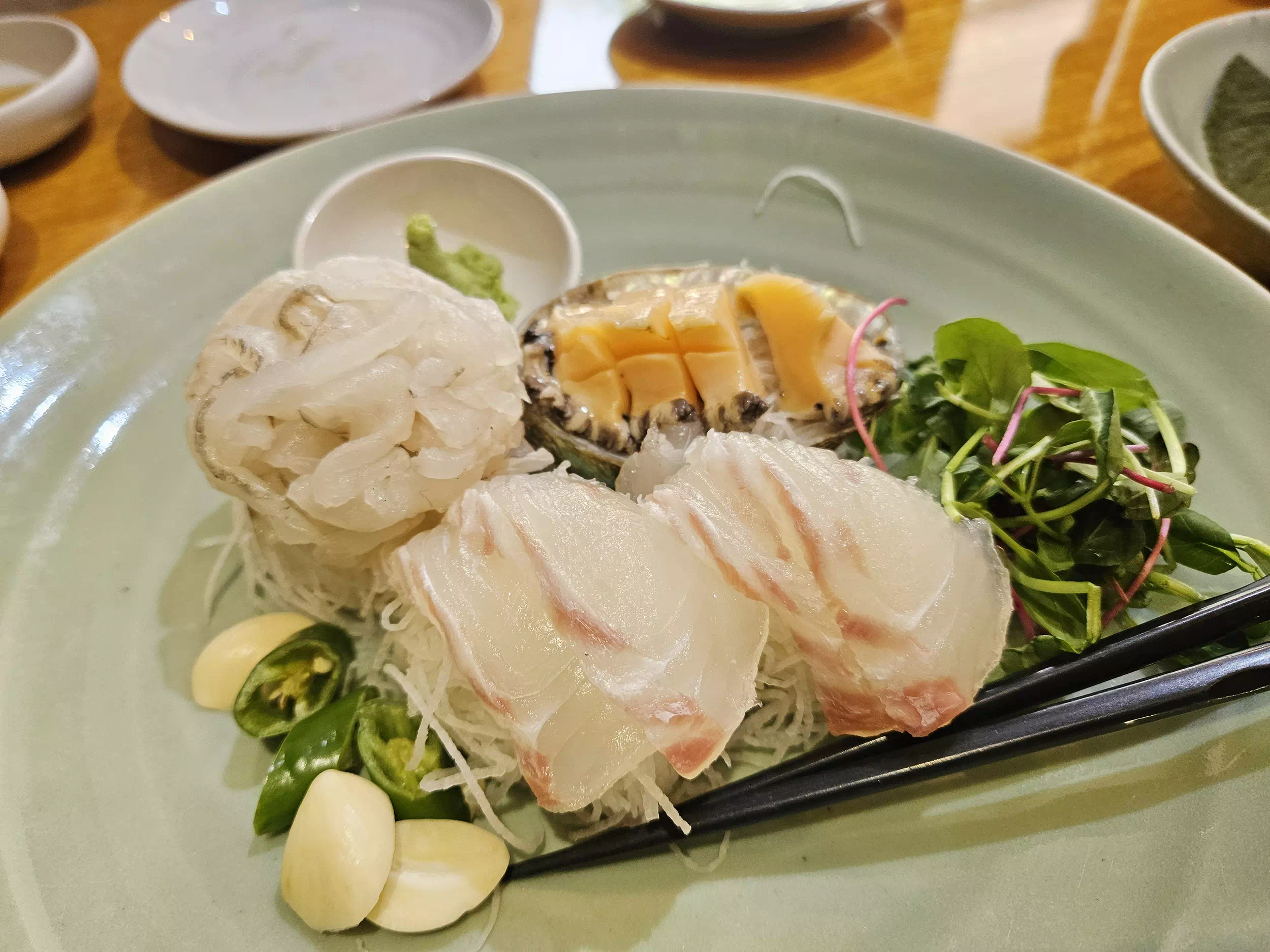 이렇게 입맛을 돋워주면 회가 준비됩니다. 식감이 살아있고 진짜 싱싱하고 맛있어요.