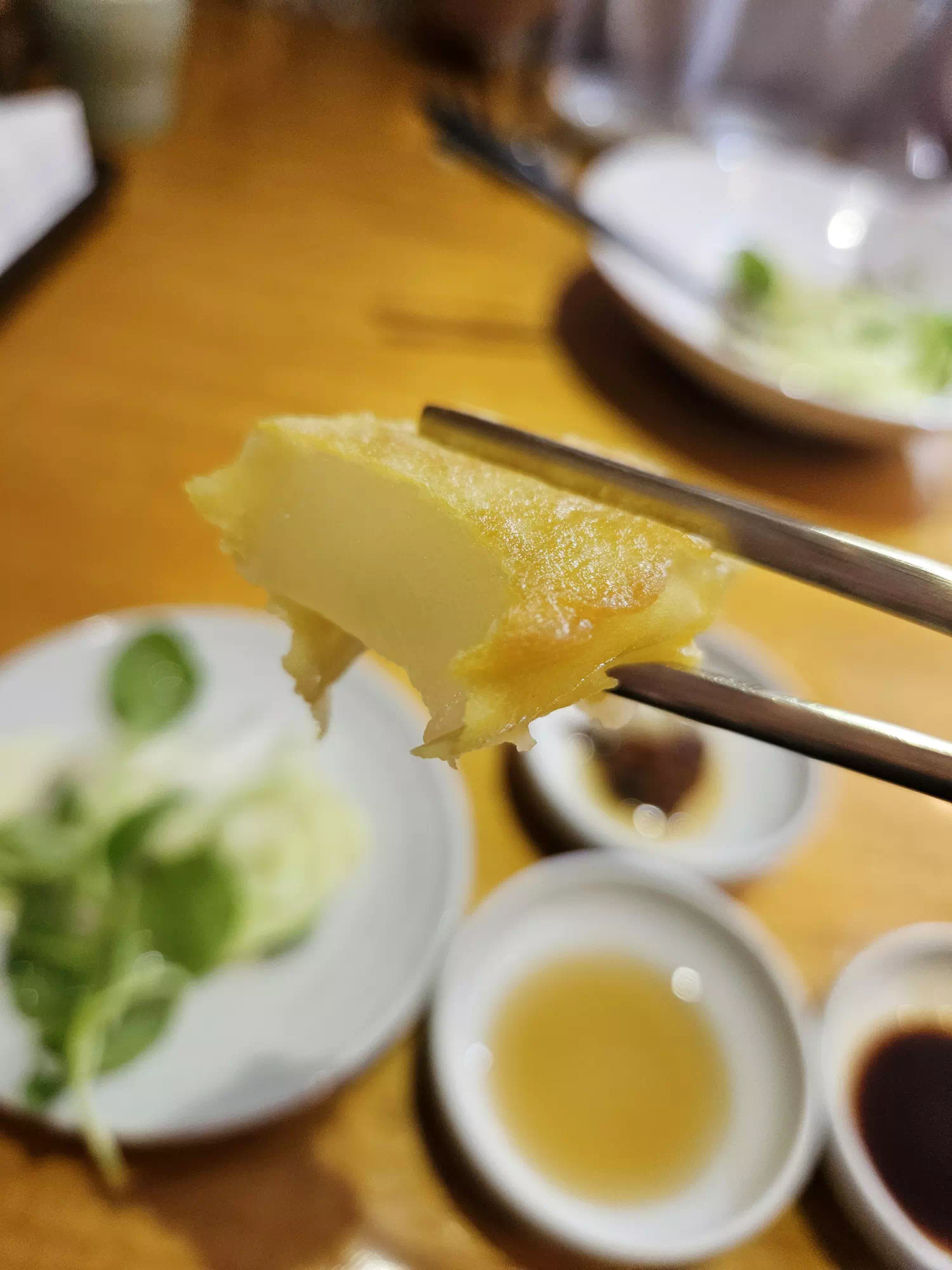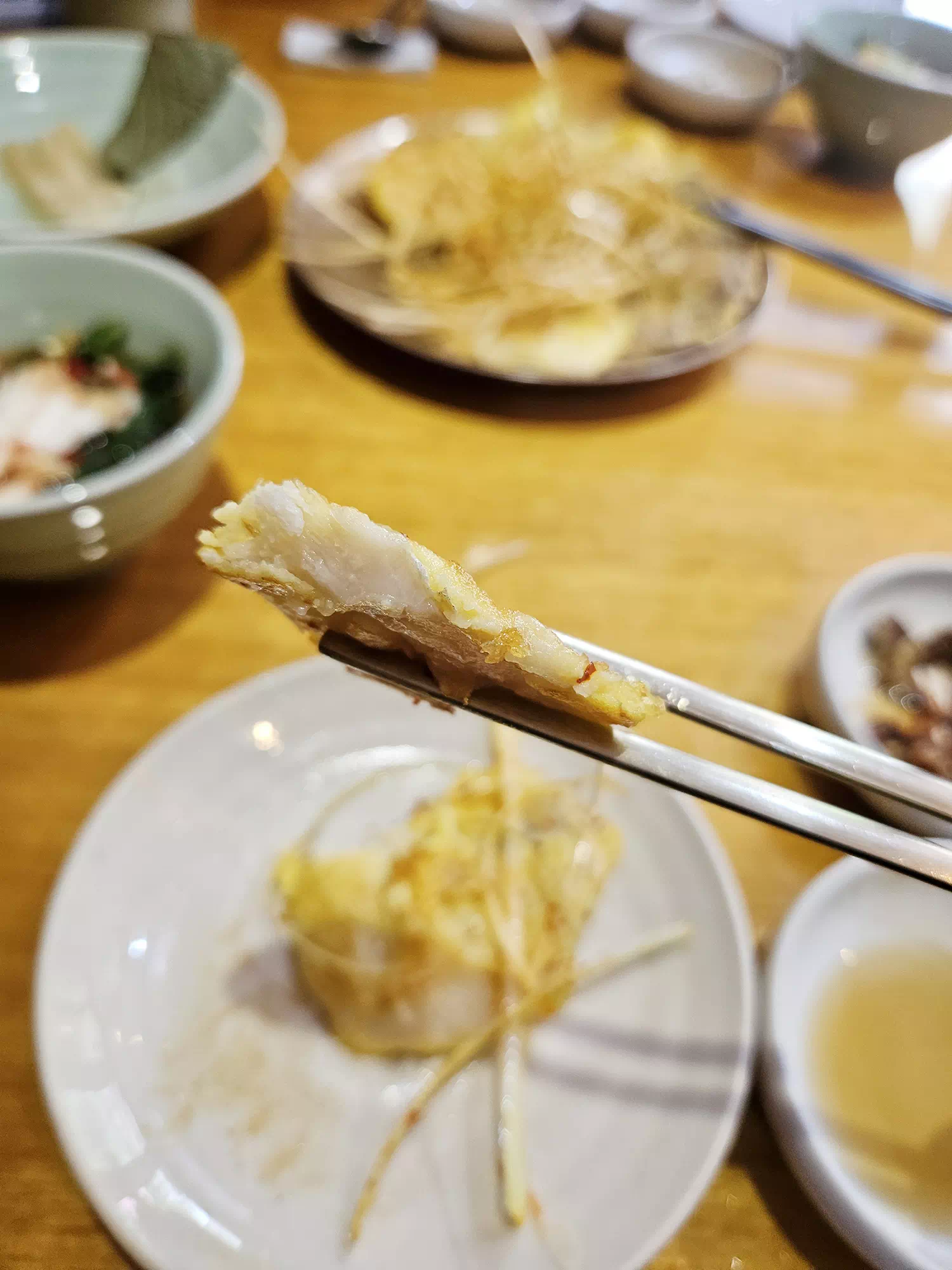반죽이 두껍지 않고 잘 부치신 것 같은데 싱거워서 자칫 느끼할 수 있다고 생각되기 때문에 꼭 파채나 김치와 함께 곁들여드시는 것을 추천합니다. 단비의 음식은 전체적으로 간이 강하지 않아 담백해서 어르신들이 좋아할 것 같았습니다.